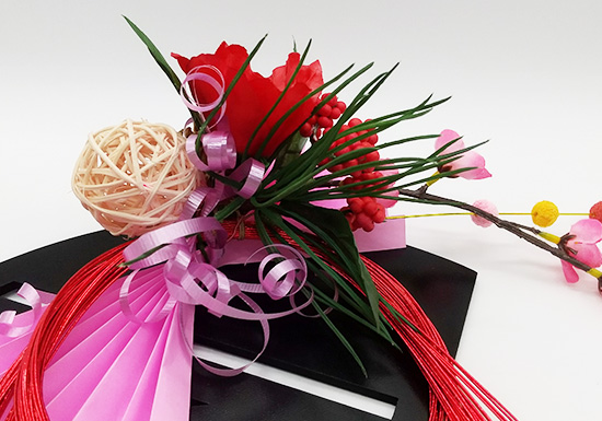 ▲水引や造花を使います